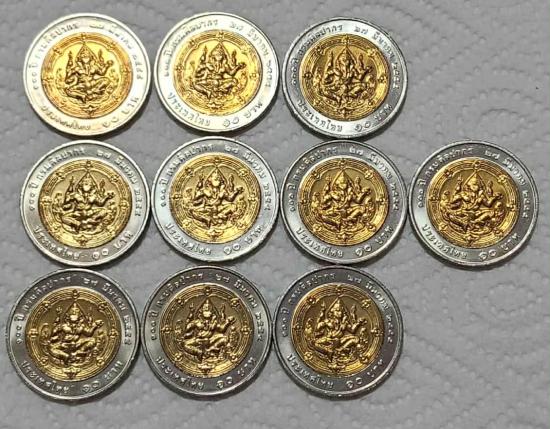 เหรียญที่ระลึก 10 บาท วาระ 100 ปีกรมศิลปากร ด้านหลังเป็นรูปพระพิฆเนศ เทพแห่งความสำเร็จ สภาพไม่ผ่านการใช้งาน UNC จำนวน 10 เหรียญ ครับ