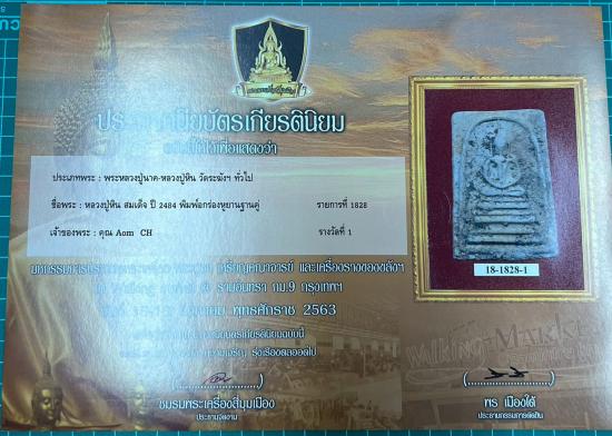 พระสมเด็จ พิมพ์ทรงอกร่องหูยานฐานคู่ ปี2484 หลวงปู่หิน วัดระฆังโฆสิตาราม ติดตางวัลที่1 งานประกวด