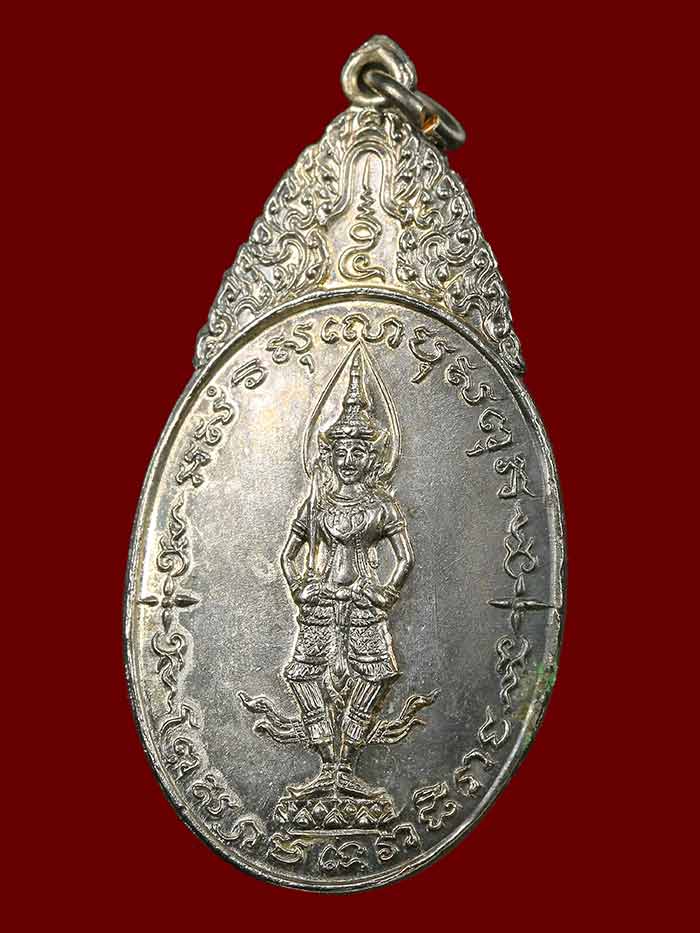 วัดใจ เหรียญพระสยามเทวาธิราช วัดป่ามะไฟ จ.ปราจีนบุรี ปี 2518 พิมพ์ใหญ่ เนื้อกะไหล่เงิน บล็อกนิยม |