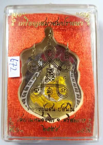 เหรียญเสมาสมปรารถนา หลวงปู่แสน ปสนฺโน 109 ปี วัดบ้านหนองจิก จ.ศรีสะเกษ เนื้อปลอกลูกปืนหน้ากากเงินขอบนวะ(แยกชุดของขวัญ) เบอร์672 พร้อมกล่องครับ