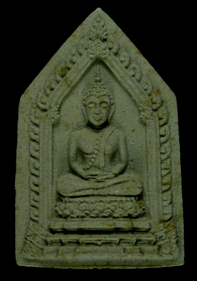 พระพุทธสิหิง เนื้อเขียวพิมพ์เล็ก โรยผงตะไบทอง เกษา (สภาพคัดสวย)