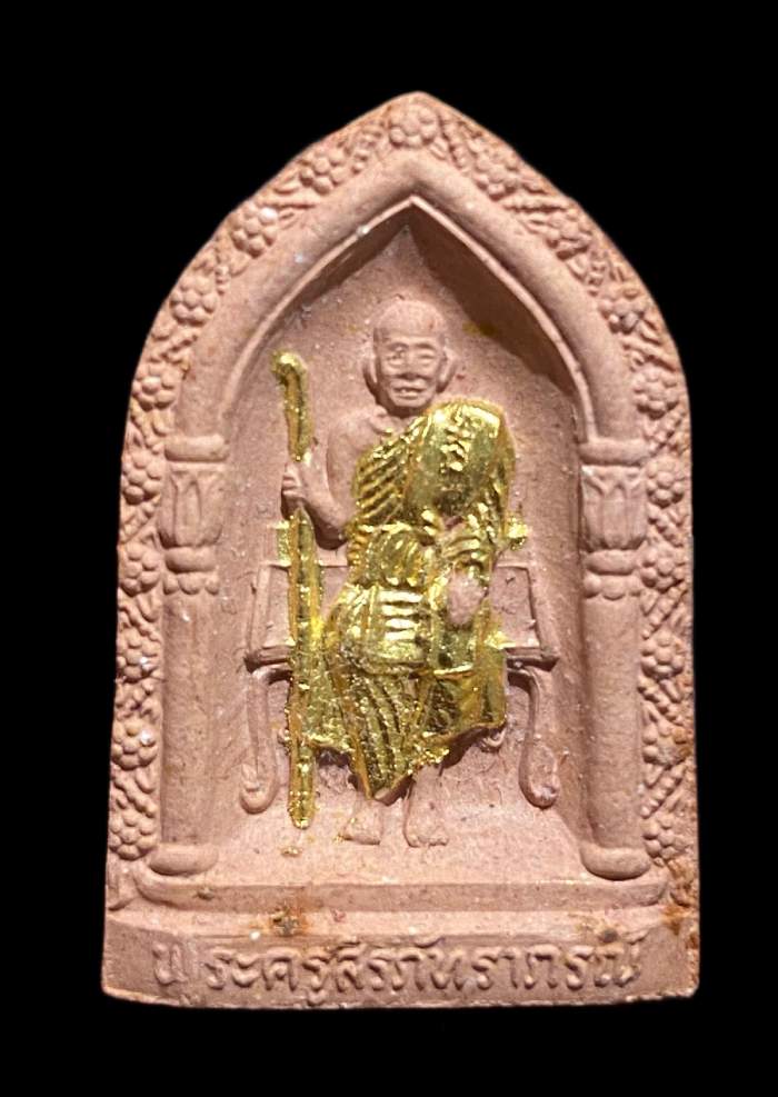 พระผงซุ้มประตูปิดทอง พระครูสิริภัทราภรณ์ หลวงพ่อนิยม สุภัทโท วัดป่าหลักร้อย จ.นครราชสีมา รุ่นไม้เท้าศักดิ์สิทธิ์