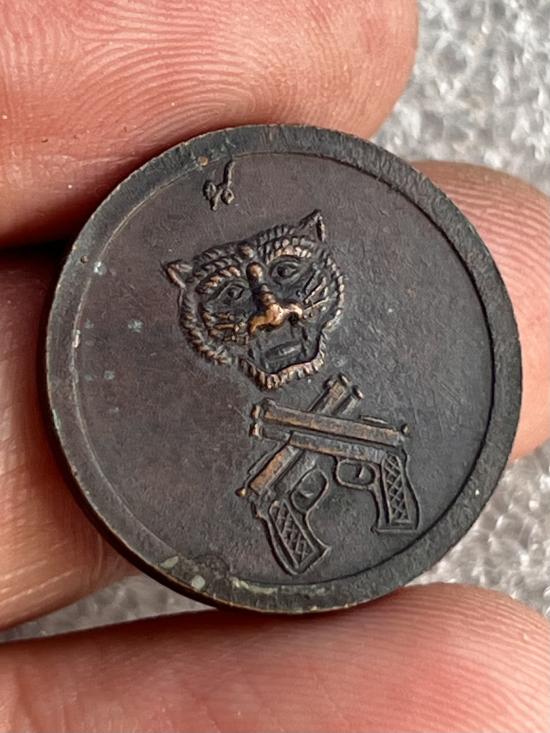 เหรียญหลังเสือปืนไขว้ อาจารย์เล็ก วัดดอนขาด อ.บางปลาม้า จ.สุพรรณบุรี
