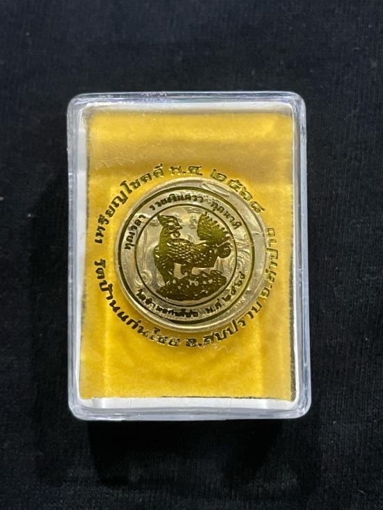 เหรียญโชคดี ครูบาเกียรติยศ วัดบ้านแก่นไชย จังหวัดลำปาง เนื้อฝาบาตรหลังไก่ หมายเลข 4104 พร้อมกล่อง