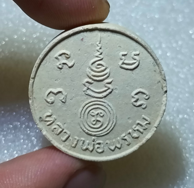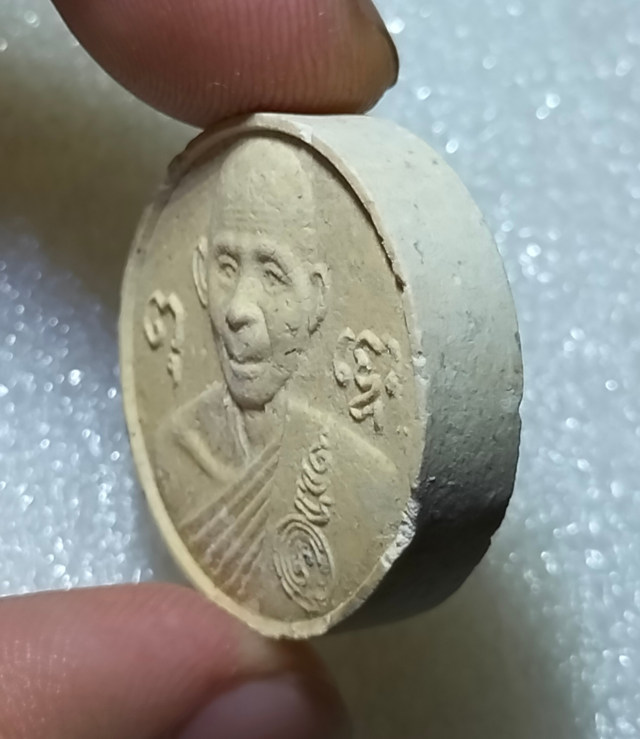 #1 พระผงกลมครึ่งองค์หลังยันต์ หลวงพ่อพรหม วัดขนอนเหนือ เนื้อผงพุทธคุณ ปี2529