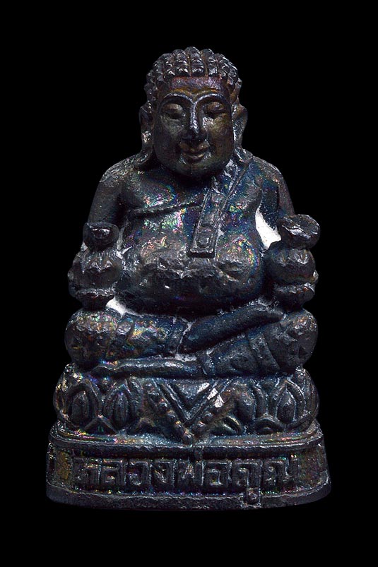 พระสังกัจจายน์ ( พิมพ์ถือถุงเงิน ) รุ่น คูณลาภ คูณเงิน คูณทอ ง ( เนื้อทองแดงรมดำ ) พ.ศ.2536 ( กล่องเดิม )