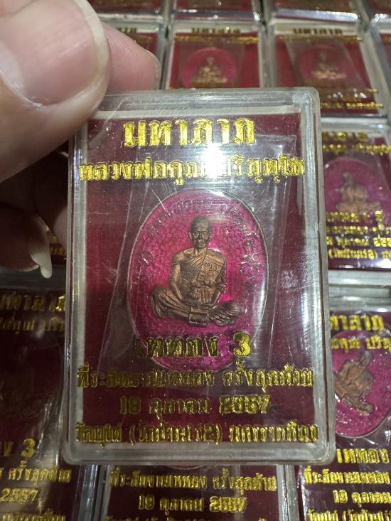 เหรียญมหาลาภ(เททอง3) ปี2557 เนื้อทองแดง ลงยา มีกล่องครบ จำนวน 1ลัง/ 100 เหรียญ