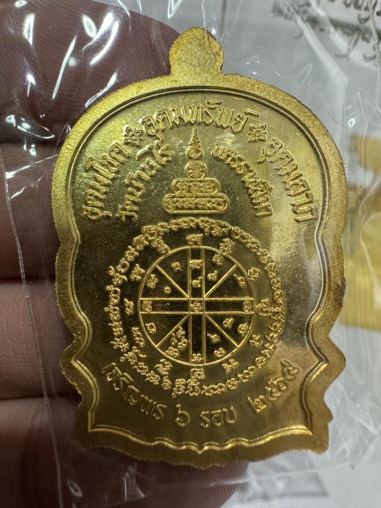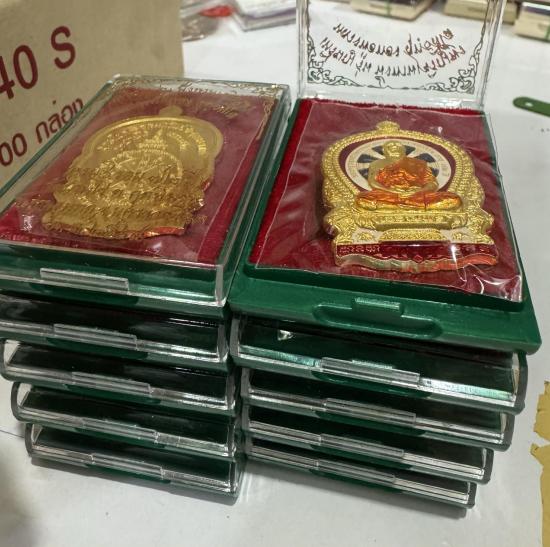 หลวงพ่อทอง วัดบ้านไร่ เหรียญนั่งพานเจริญพร ปี2564 เนื้อกะไหล่ทอง ลงยาธงชาติ มีกล่องเดิม จำนวน 10 เหรียญ