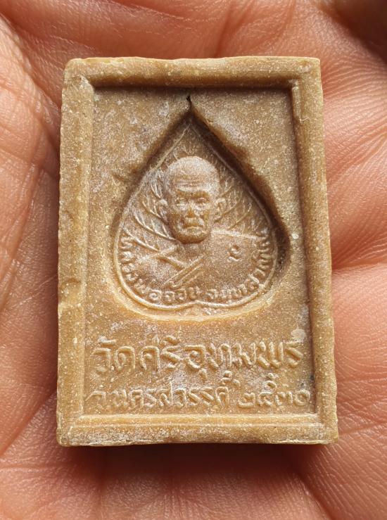 สมเด็จหลังรูปเหมือนใบโพธิ์ หลวงพ่อจ้อย วัดศรีอุทุมพร ปี 2530 เนื้อผงน้ำมัน