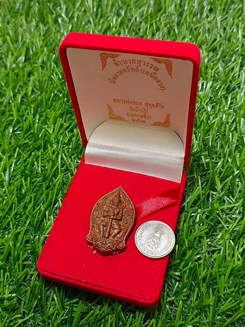 " วัดใจ เคาะเดียวแดง " ท้าวเวสสุวรรณ บันดาลทรัพย์ เหนือดวง เนื้อดินเผา ฝังบัวชนวน รุ่นแรก ตะกรุดเงิน+ทอง หลวงพ่อทอง สุทธสีโล วัดบ้านไร่ จ.นครราชสีมา ปี 2563 หมายเลข 45 กล่องกำมะหยี่สีแดง