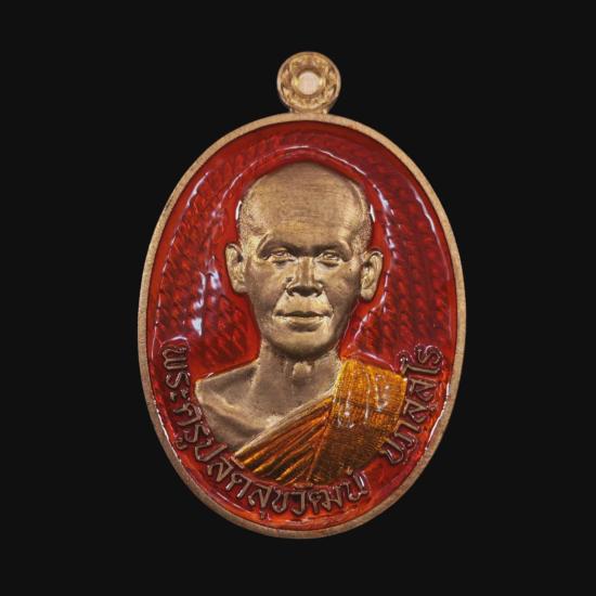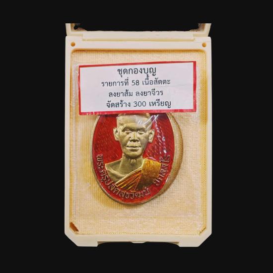 เหรียญอุดมทรัพย์ พระอาจารย์ต้อม วัดท่าสะแบง ชุดกองบุญ เนื้อสัตตะ ลงยาส้ม ลงยาจีวร ต๊อกโค้ต 15 พร้อมกล่องเดิม