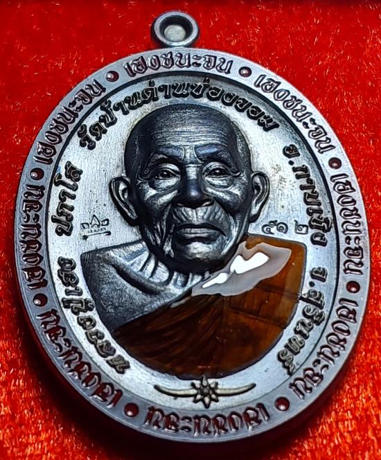 หลวงปู่เฮง ปภาโส รุ่นเฮงชนะจน เนื้อทองแดง รมดำ ลงยาจีวร ลงยาขอบแดง จัดสร้าง 600 เหรียญ ตอกเลข 512 เคาะเดียว