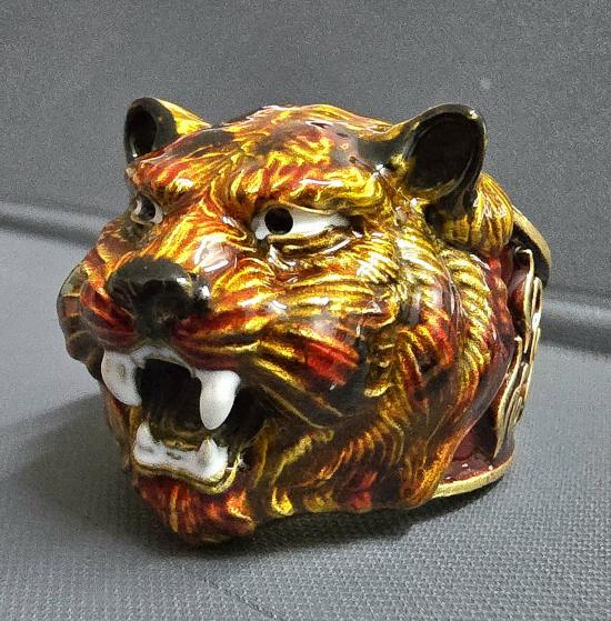 เนื้อทองระฆัง ลงยาเสือเสมือนจริง ลงยาขอบข้าง ขนาด b 62-68