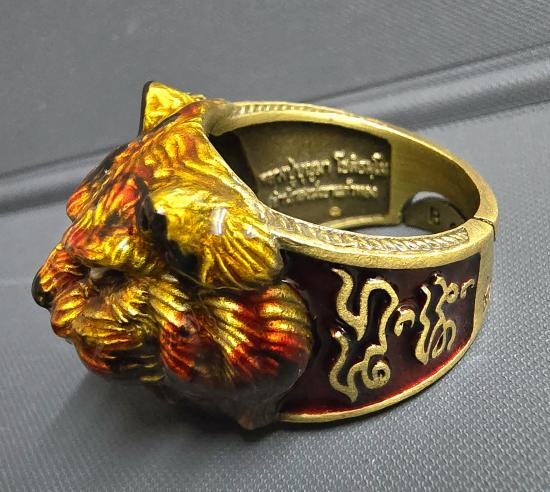 เลข ๑...แหวน"คงกระพัน" รุ่น ๑ หลวงปู่บุญมา โชติธัมโม วัดเขาแก้วทอง ปราจีนบุรี เนื้อทองระฆัง ลงยาเสือเสมือนจริง ลงยาขอบข้าง ขนาด b 62-68 องค์นี้ หมายเลขแม่ทัพ เลข ๑....พร้อมกล่อง แหวนสวยมากครับ