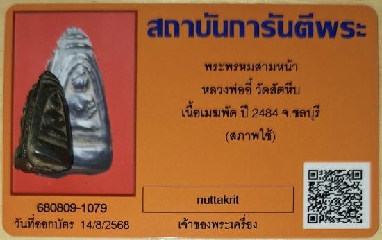 พรหม 3 หน้า หลวงพ่ออี๋ วัดสัตหีบ เนื้อเมฆพัด ปี 2484 จ.ชลบุรี มาพร้อมบัตรรับรอง