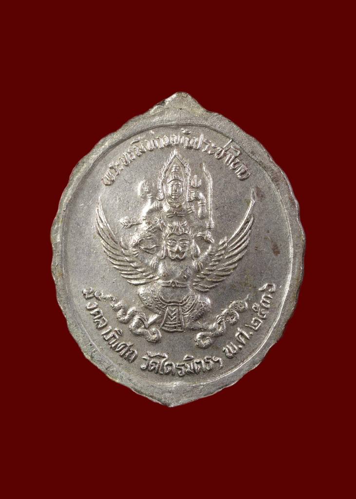 เหรียญ ร.5 หลังพระนารายณ์ทรงครุฑ พิธีมังคลาภิเศก เจ้าคุณธงชัย วัดไตรมิตรฯ ปี 2536 เหรียญกะไหล่เงิน ขนาดประมาณ 2.7 ซม.