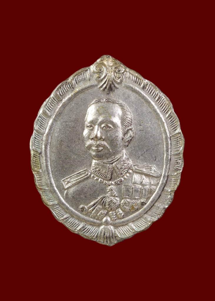 " บารมีท่วมท้นประชาไทย " ด้านหน้ารูปเหมือน ร.5 หันข้าง ด้านหลังพระนารายณ์ทรงครุฑ