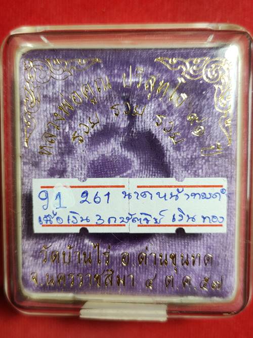 เหรียญหลวงพ่อคูณ ปริสุทโธ 91 ปี รุ่น รวย รวย รวย ออกวัดบ้านไร่ ปี 2557 เนื้อ เงิน3กษัตริย์หน้าทองคำ หมายเลข 261 สภาพสวย เคาะเดียวแดง