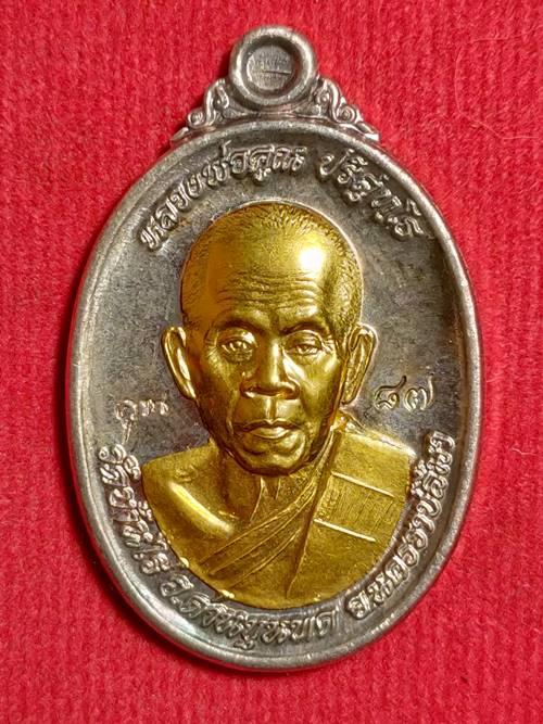 เหรียญหลวงพ่อคูณ ปริสุทโธ 91 ปี รุ่น รวย รวย รวย ออกวัดบ้านไร่ ปี 2557 เนื้อ เงินหน้าทองคำ หมายเลข 87 สภาพสวย เคาะเดียวแดง