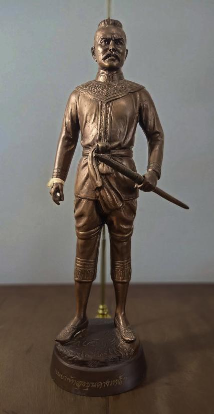 รูปหล่อบูชา ท่านเจ้าพระยาพัทลุงขุนคางเหล็ก รุ่น๑๐๐ปี ณ พัทลุง พิธีเขาอ้อสูง 14.5 นิ้ว ฐาน 4.5 นิ้ว องค์ใหญ่ ใต้ฐานบรรจุเพชรหน้าทั่งเขาอ้อ