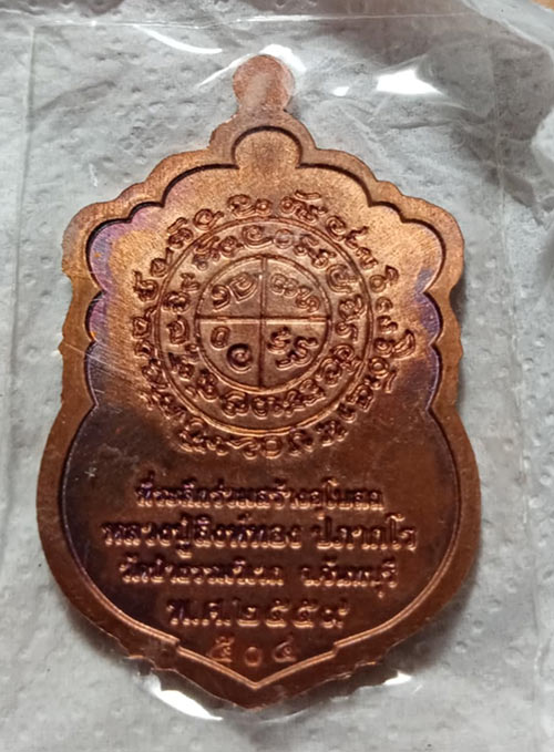 189.....***เหรียญเสมา รุ่น รวยทันใจ เนื้อทองแดง หลวงปู่สิงห์ทอง ปภากโร วัดป่าธรรมวิเวก (ซับตารี) ปี 2559*** เลข 504