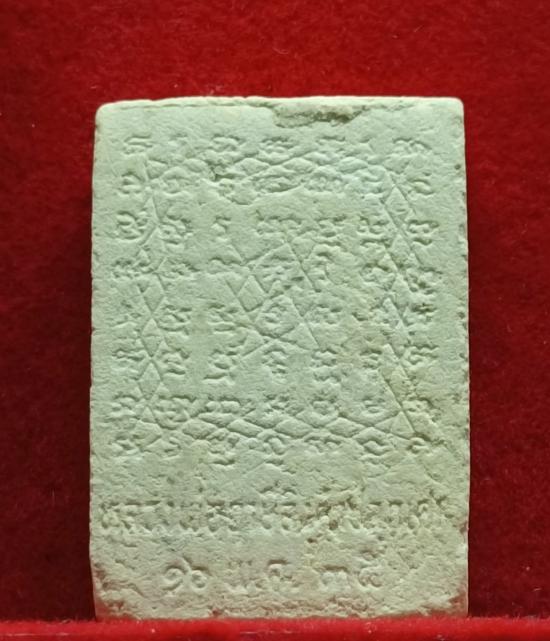 ด้านหลังเป็นยันต์เกราะเพชร และเขียนวันที่ 16 พ.ค. 35 ซึ่งเป็นพิธีเดียวกันกับวันพุทธาภิเษกสมเด็จองค์ปฐมรุ่น 1 ที่วิหารแก้ว 100 เมตร