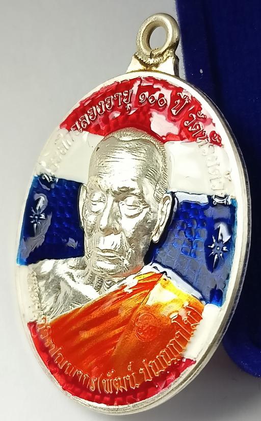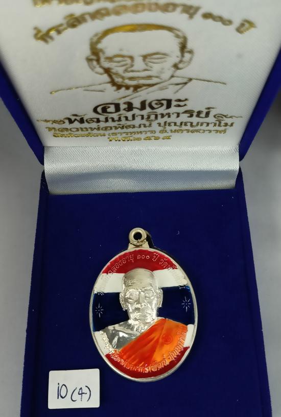 เหรียญห่วงเชื่อมหลังเต่า รุ่น"อมตะพัฒน์ปาฏิหาริย์" หลวงพ่อพัฒน์ วัดห้วยด้วน เนื้อเงินลงยาขุ้ยพื้นลายธงชาติ เบอร์ 10 พร้อมกล่องเดิมครับ
