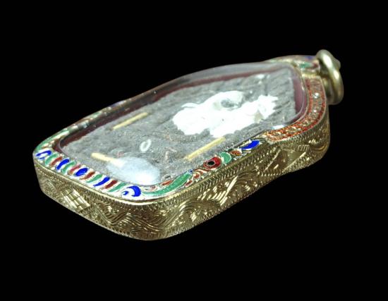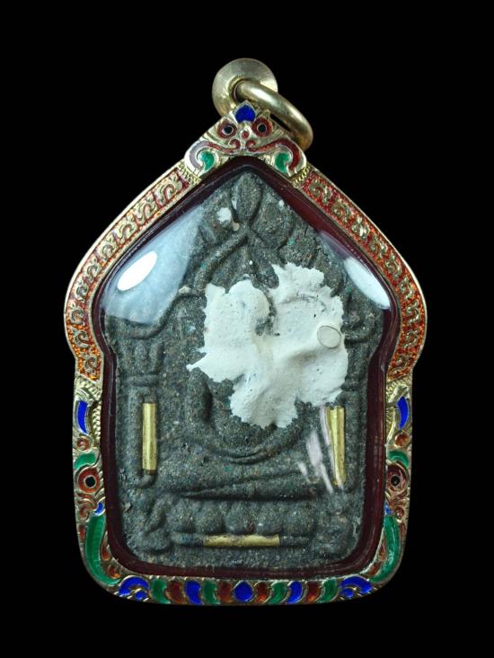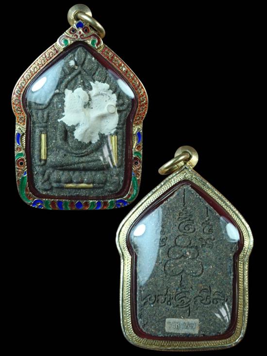 พระขุนแผนหลวงพ่อรวย วัดมาบตาพุด เนื้อรวมมวลสาร+ปิดแป้งเจิม ตะกรุดทองคำ หมายเลข 67 เลี่ยมกรอบเงินลงยาชุบทอง