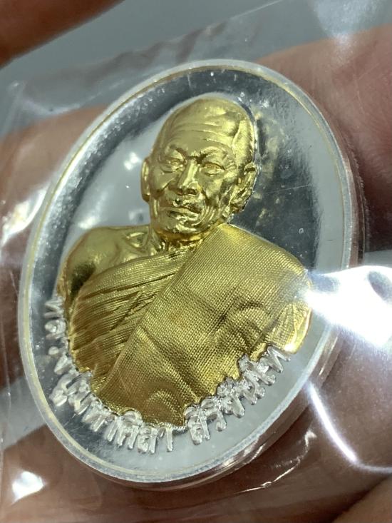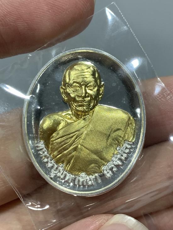 หลวงปู่มหาศิลา หลวงปู่ศิลา รุ่นอายุวัฒนมงคล พิมรุ่นแรก2 เนื้อเงินหน้ากากทองคำ เบอร์ 67 เลข 2 หลักสวยๆหายาก