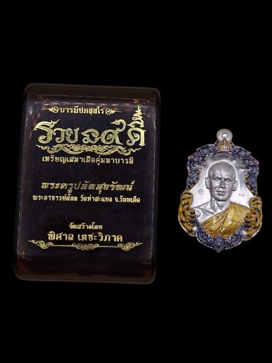 ((วัดใจ))เหรียญเสมาเสือคู่บารมี รวยนะ 9 ดี พระอาจารย์ต้อม วัดท่าสะแบง เนื้อเงินลงยา พร้อมกล่องครับ
