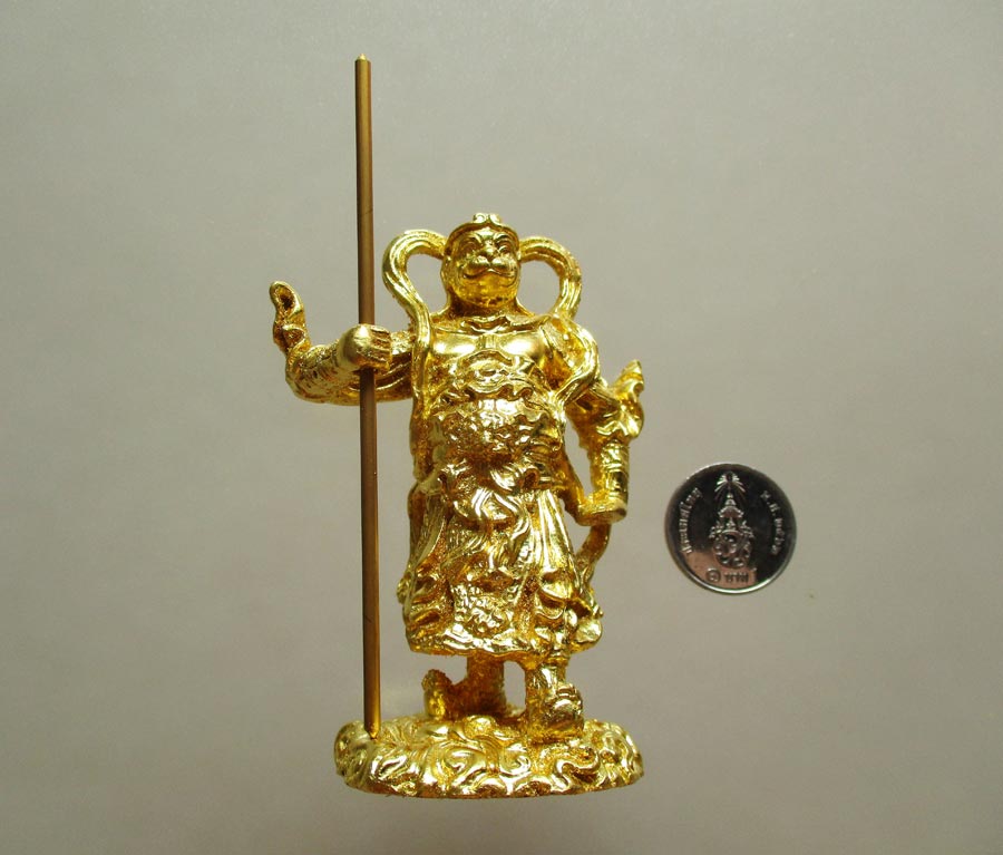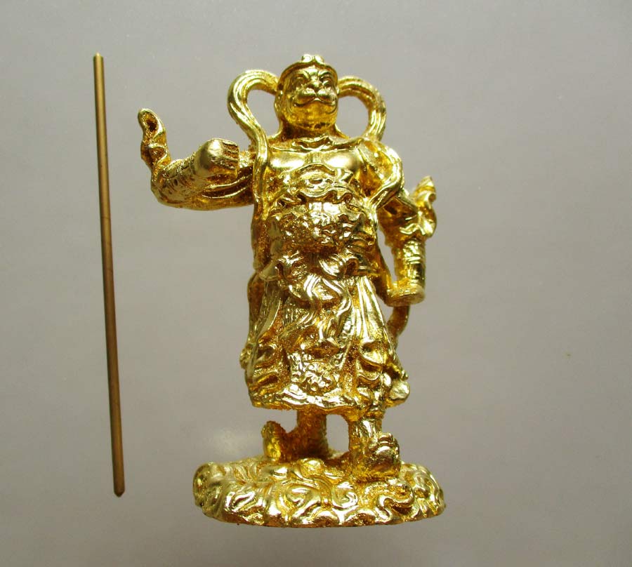 องค์บูชาตั้งหน้ารถ เจ้าพ่อเห้งเจีย รุ่นสะท้านไตรภพ พิธีมหาพุทธาภิเษกที่ยิ่งใหญ่ ณ.ศาลพระกาฬ จ.ลพบุรี พ.ศ.2547 เนื้อทองเหลืองหล่อตันปิดทองคำเปลวทั้งองค์ สูงรวมฐาน 3 นิ้ว !!