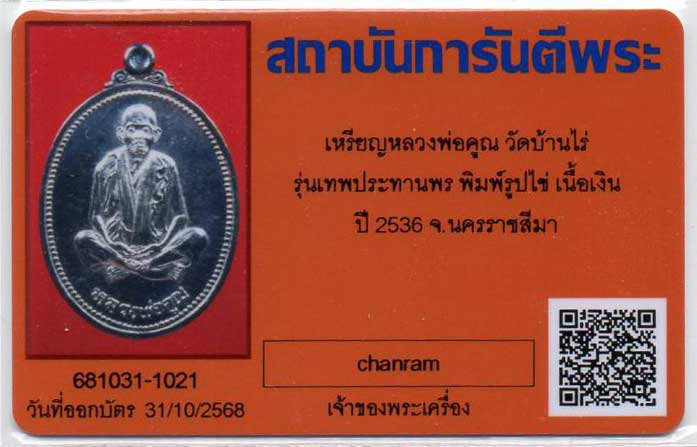 เหรียญหลวงพ่อคุณ รุ่นเทพประทานพร ปี2536