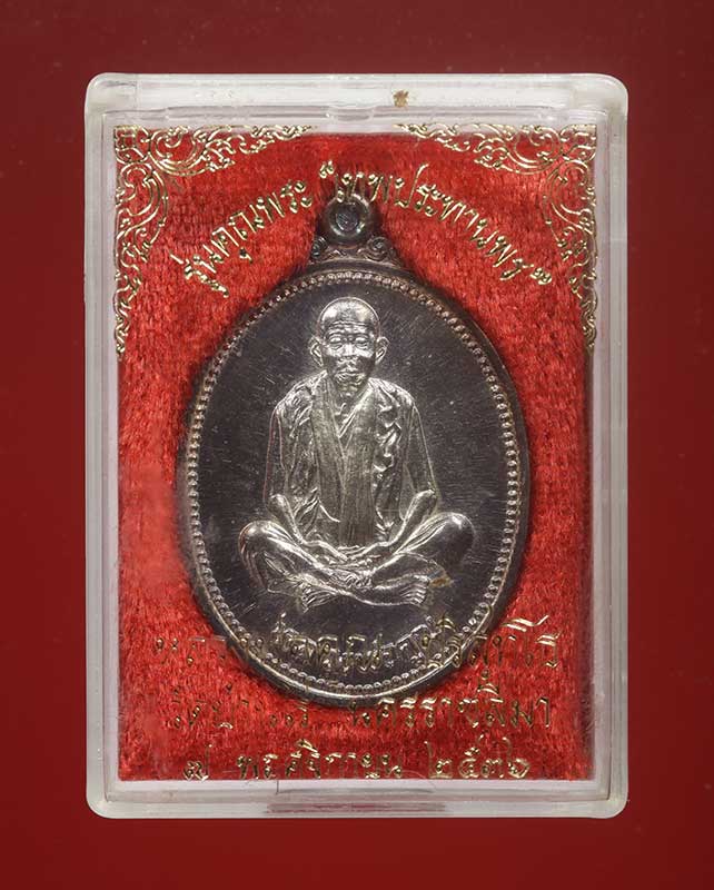 เหรียญหลวงพ่อคุณ รุ่นเทพประทานพร พิมพ์รูปไข่ เนื้อเงิน สวยๆผิวเงาๆ กล่อง+บัตร