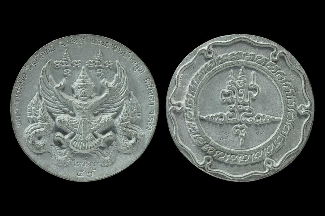 วัดใจ 2 เหรียญ เหรียญหล่อพญาครุฑ ไหว้ครู 52 พระอาจารย์ประสูติ วัดในเตา ตรัง มีซองใส่ให้อันเดียวน่ะครับ |