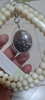 เหรียญไตรสรณคมน์ เนื้อทองแดง หลวงตาม้า วัดถ้ำเมืองนะ พร้อมรอยจารหลวงตาม้า เลี่ยมจากวัดพร้อมประคำ