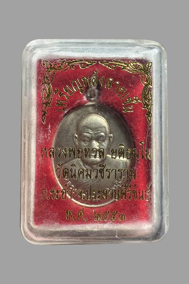 เหรียญหลังลายเซ็น หลวงพ่อหวล วัดนิคมวชิราราม เนื้ออัลปาก้า ปี53 |