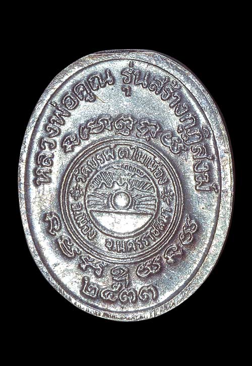เหรียญเม็ดแตง ( นั่งบริกรรมคาถาชักปะคำ ) รุ่น สร้างกุฏิสงฆ์ วัดบรูพ์ ( เนื้อเงิน ) พ.ศ.2533 ( กล่องเดิม )