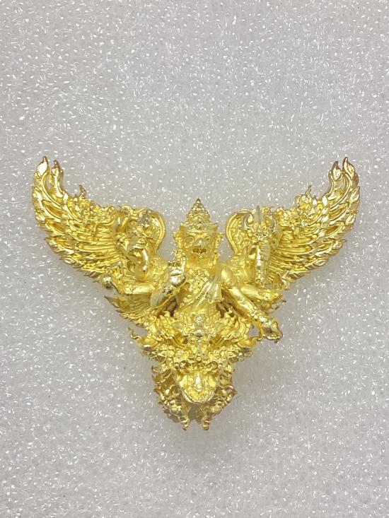 พญาครุฑมังรายศาสตร์ เศรษฐีอนันตทรัพย์ พระอาจารย์วิรุต วัดสันมะเหม้า จ.เชียงราย เนื้อสัมฤทธิ์ชุบทองขัดเงาบางส่วน พิมพ์เล็ก สูง 3 ซ.ม. กล่องเดิม |