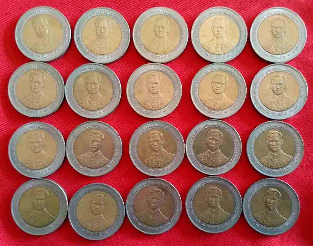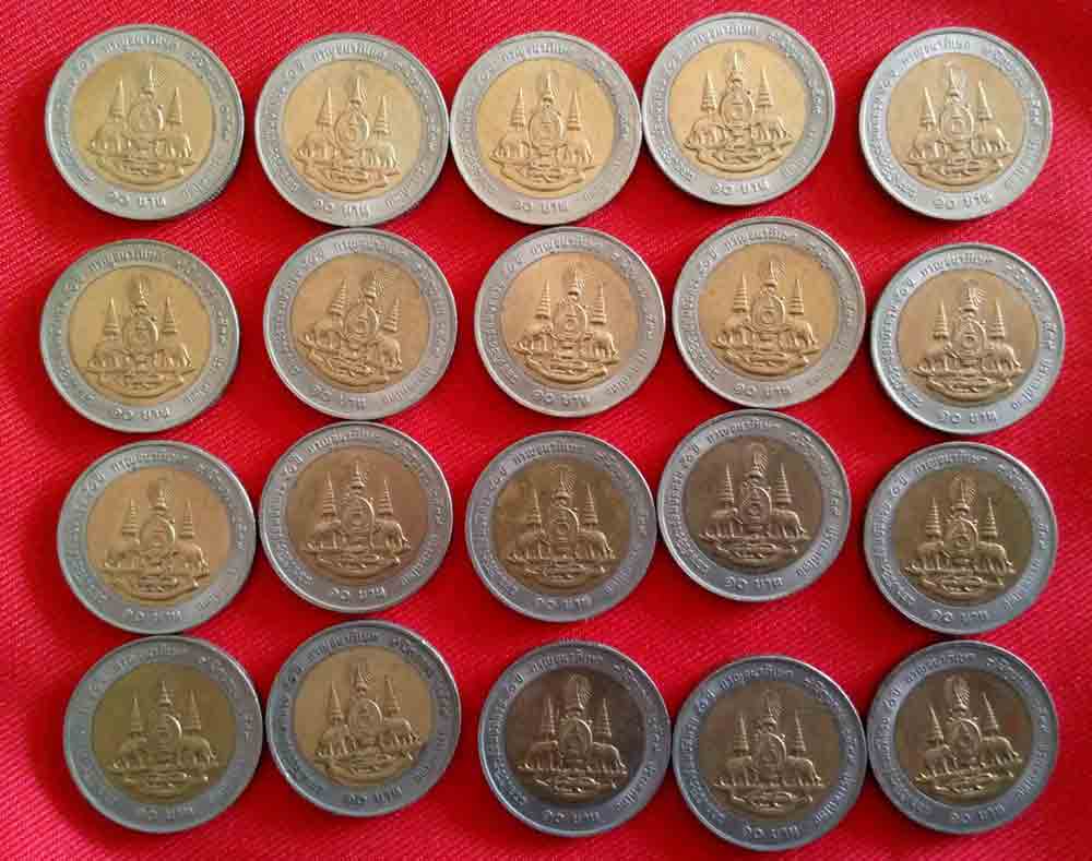 เหรียญ10บาท สองสี ร.9 ฉลองสิริราชสมบัติครบ 50 ปี จำนวน 20 เหรียญ เคาะเดียวค่ะ