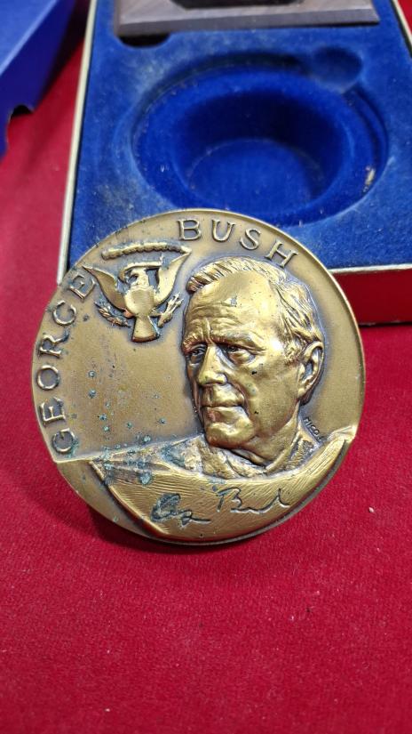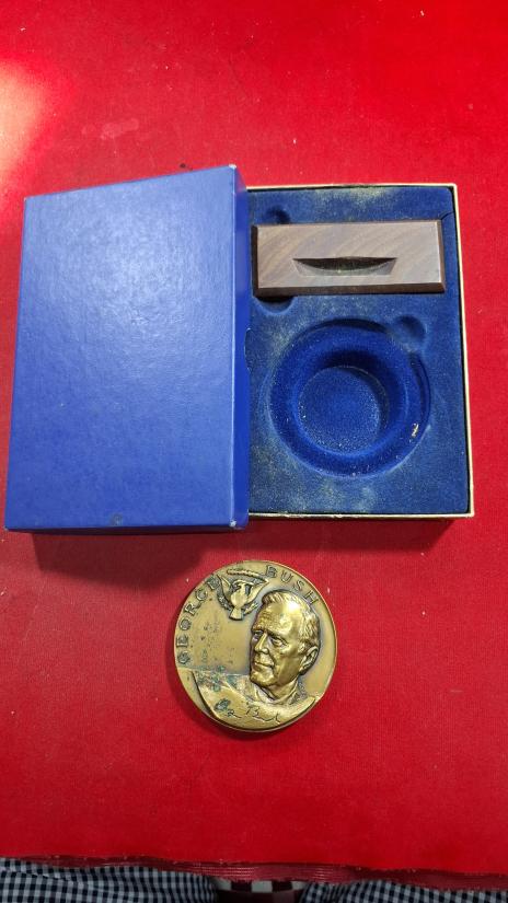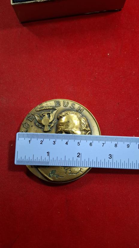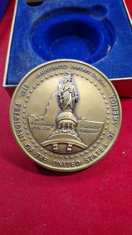 เหรียญทองแดงขนาดใหญ่ 7ซม. ที่ระลึกพิธีสาบานตนเข้ารับตำแหน่งป ระธานาธิบดีคนที่ 41 ของสหรัฐอเมริกา จอร์จ บุช ในปี 1989 ผลิ ตโดย US Mint