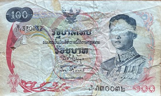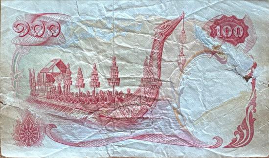 ธนบัตร 100 บาท เรือสุพรรณหงษ์ แบบ 10 สภาพตามรูป มีรอยยับ มีรอยขาด