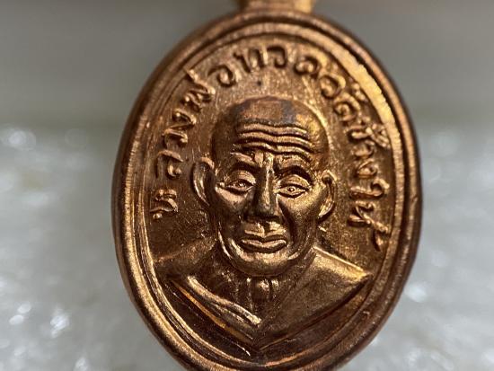 หลวงปู่แผ้ว ปวโร วัดรางหมัน เหรียญเม็ดแตงหลวงปู่ทวดหลังหลวงปู่แผ้ว (เนื้อทองเเดง)