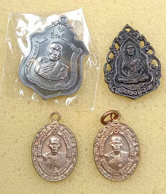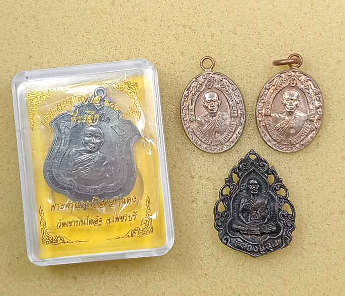 เหรียญยุคหลังหลวงพ่อแดง วัดเขาบันไดอิฐ เพชรบุรี + เหรียญยุคหลัง หลวงพ่อฉุย วัดคงคาราม เพชรบุรี 3 เหรียญ