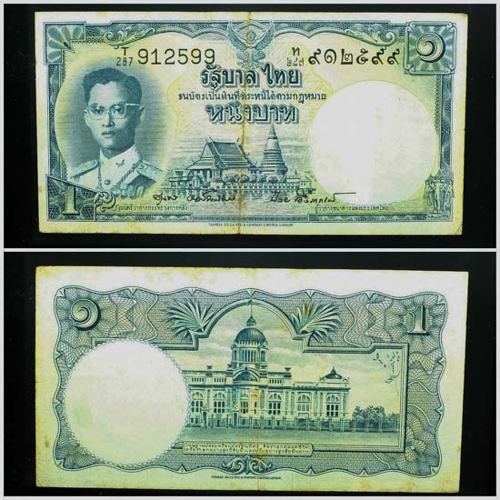 ธนบัตร 1 บาท ร๙ โทมัสแบบ 9 ลายเซ็นต์ สุนทร - ป๋วย จำนวน 3 ฉบับ