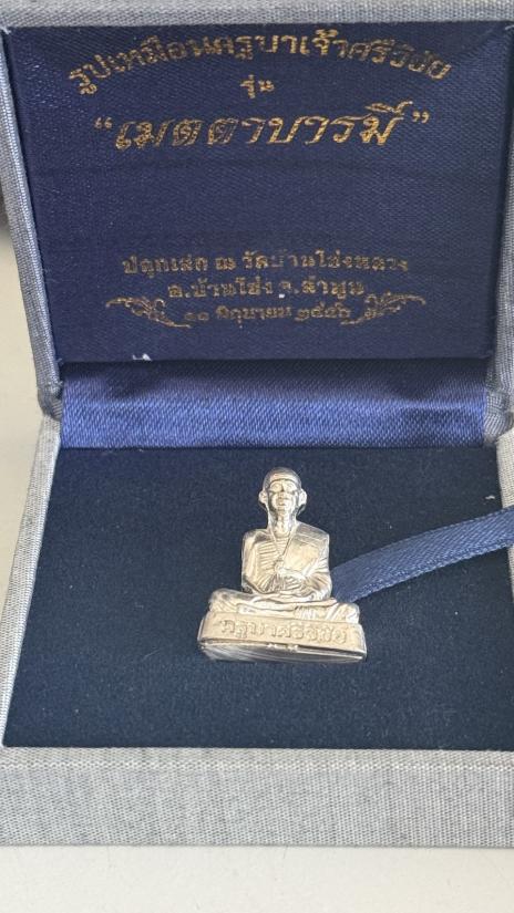 เคาะเดียวแดง รูปหล่อครูบาศรีวิชัย ออกวัดบ้านโฮ่งหลวง จ ลำพูน เนื้อเงิน หนัก 17.5 กรัม กล่องเดิม |