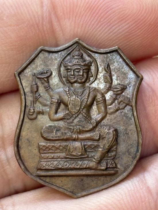 เหรียญท้าวมหาพรหมหลวงปู่คร่ำ วัดวังหว้า จ.ระยอง ปี๒๕๑๗ เนื้อทองแดงตอกโค้ต มีจารมือ หลวงพ่อคง หลวงปู่ทิม หลวงปู่คร่ำ หลวงพ่อสมชาย หลวงปู่บัว