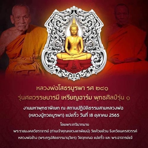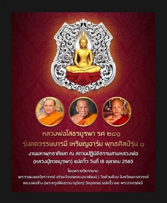 หลวงพ่อโสธรบูรพา รศ.141 รุ่นศตวรรษบารมี เหรียญอาร์ม พุทธศิลป์รุ่น 1 พิมพ์ใหญ่ ขนาด 3.2 ซม. รายการลุ้นเนื้อยกลังนำฤกษ์ มี 59 องค์