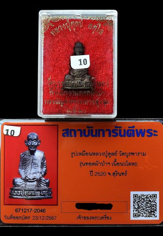 วัดใจ..100 รูปเหมือนหลวงปู่ดูลย์ วัดบูรพาราม เนื้อนวโลหะ ที่ระลึกงานทอดผ้าป่ากองบัญชาการทหารสูงสุด ปี 2520 จ.สุรินทร์ มีกล่องเดิม