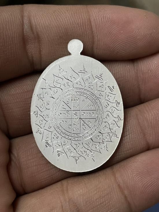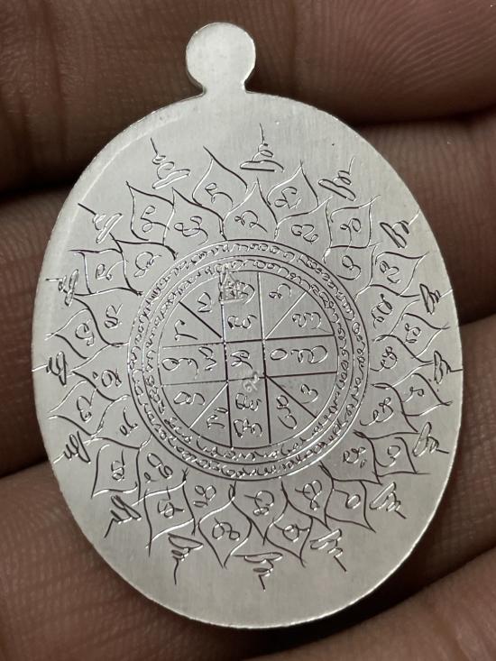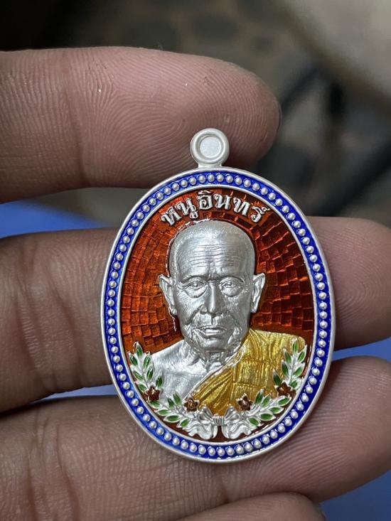 เหรียญอายุวัฒนมงคล ๘๙ หลวงปู่หนูอินทร์ วัดป่าพุทธมงคล เนื้อเงินหลังเรียบ รอยจารพระอาจารย์เด่นดวง หมายเลข 9 จำนวนการสร้าง 108 องค์