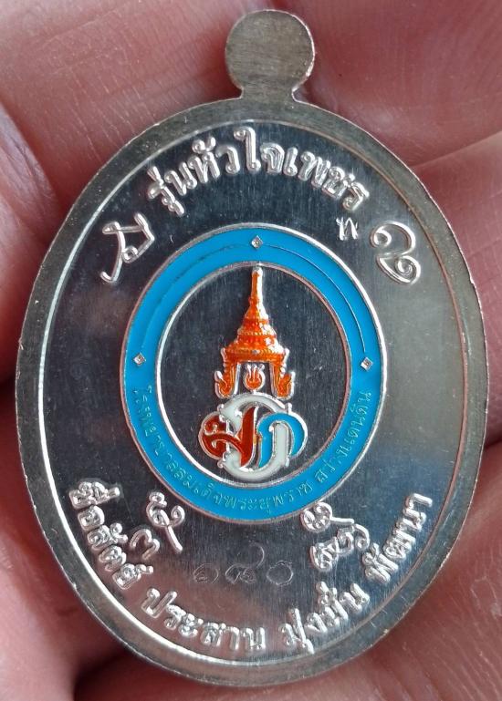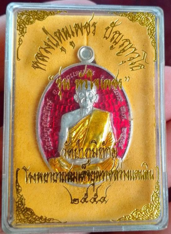 เหรียญหลวงปู่หนูเพชร รุ่นหัวใจเพชร วัดป่าภูมิทักษ์ ปี 2554 เนื้อเงินลงยา พร้อมกล่องเดิม สภาพสวย หมายเลข 180